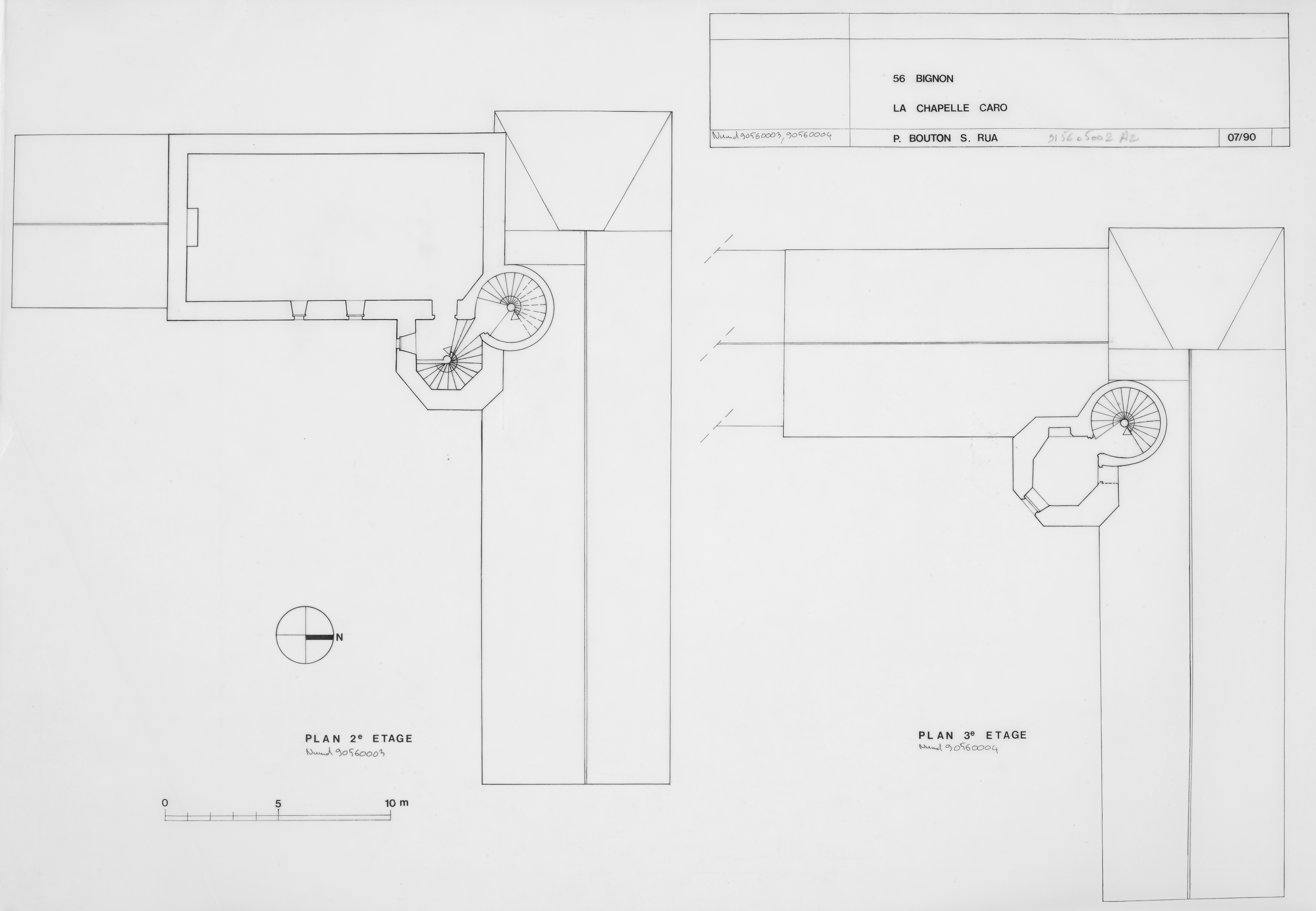 Manoir : plans des deuxième et troisième étages (état en 1991)Immatriculation