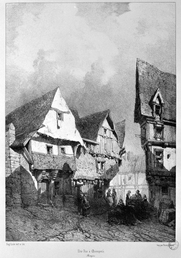 A gauche, deux maisons en pan de bois disparues (rue Savary). Gravure de Ciceri, 1846 (Taylor, Nodier, Voyages pittoresques)Immatriculation