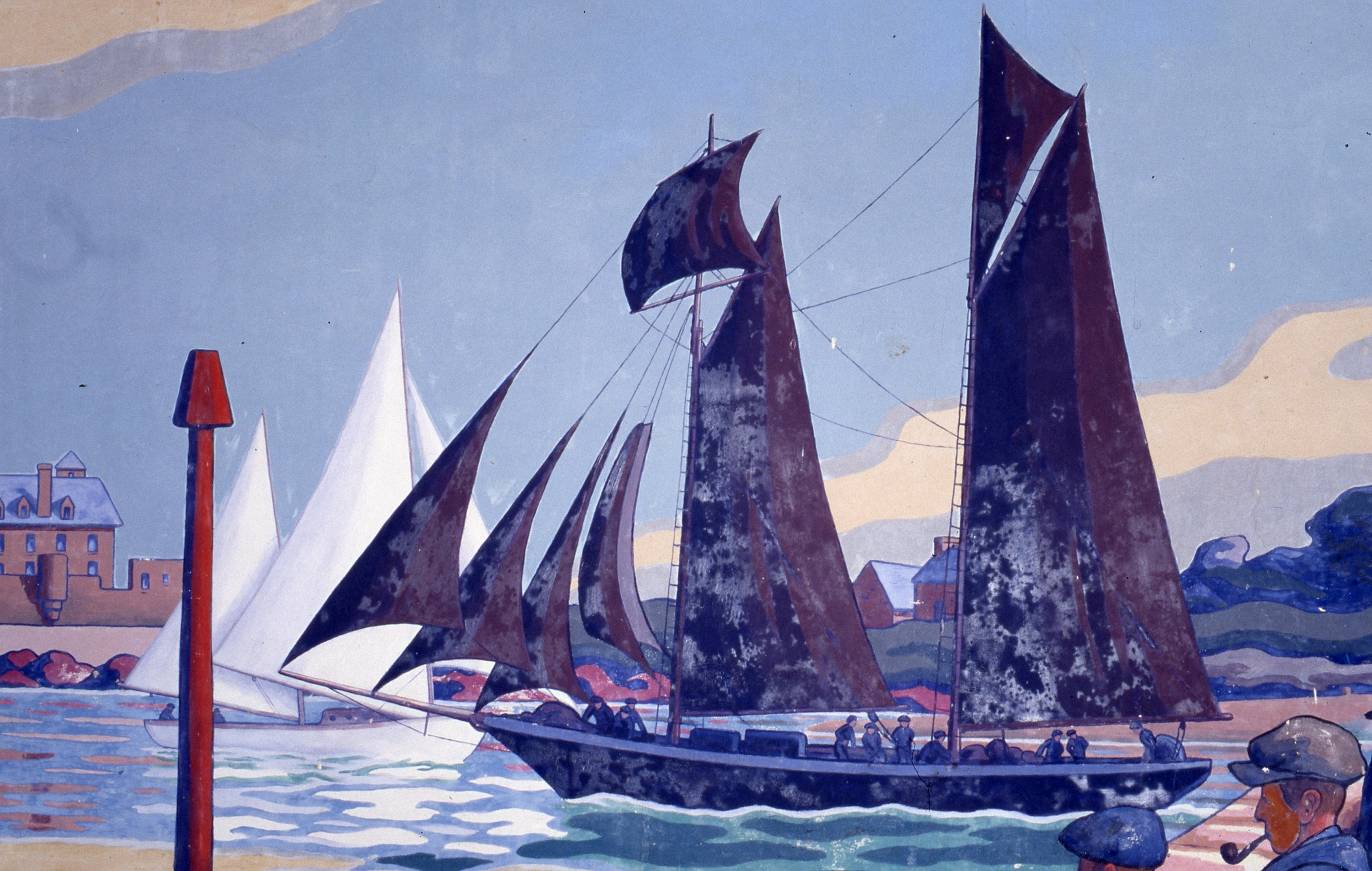 Panneau n°1 : détail du bateau de pêche quittant le portImmatriculation