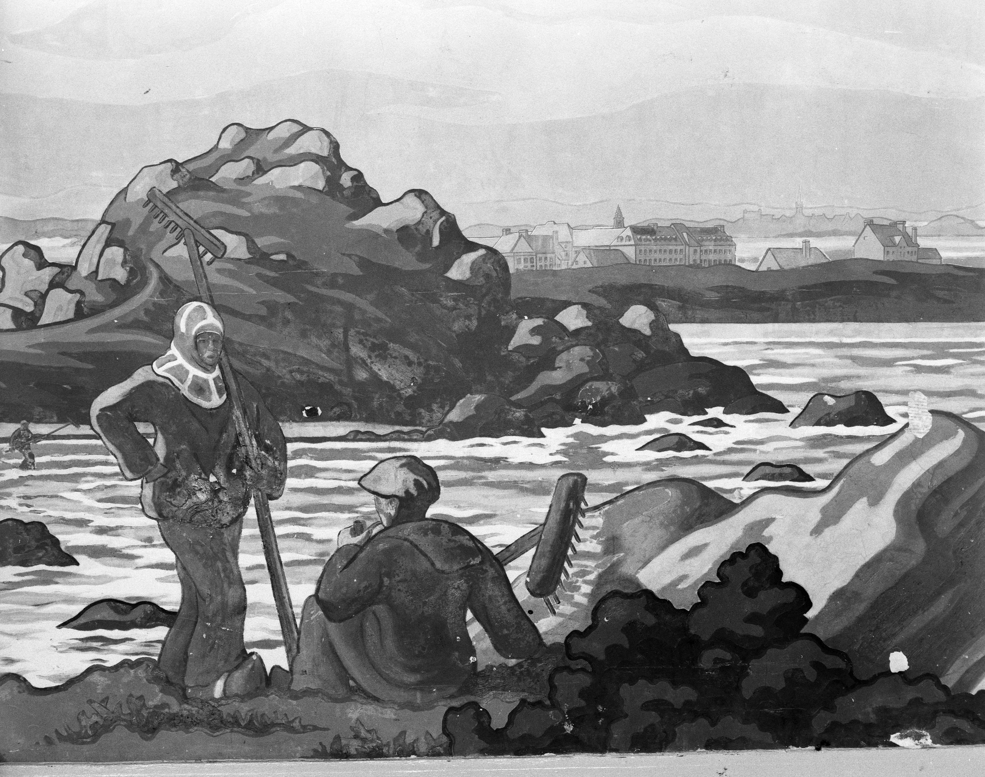 Panneau n°2 : détail de personnages ramassant le goémonImmatriculation