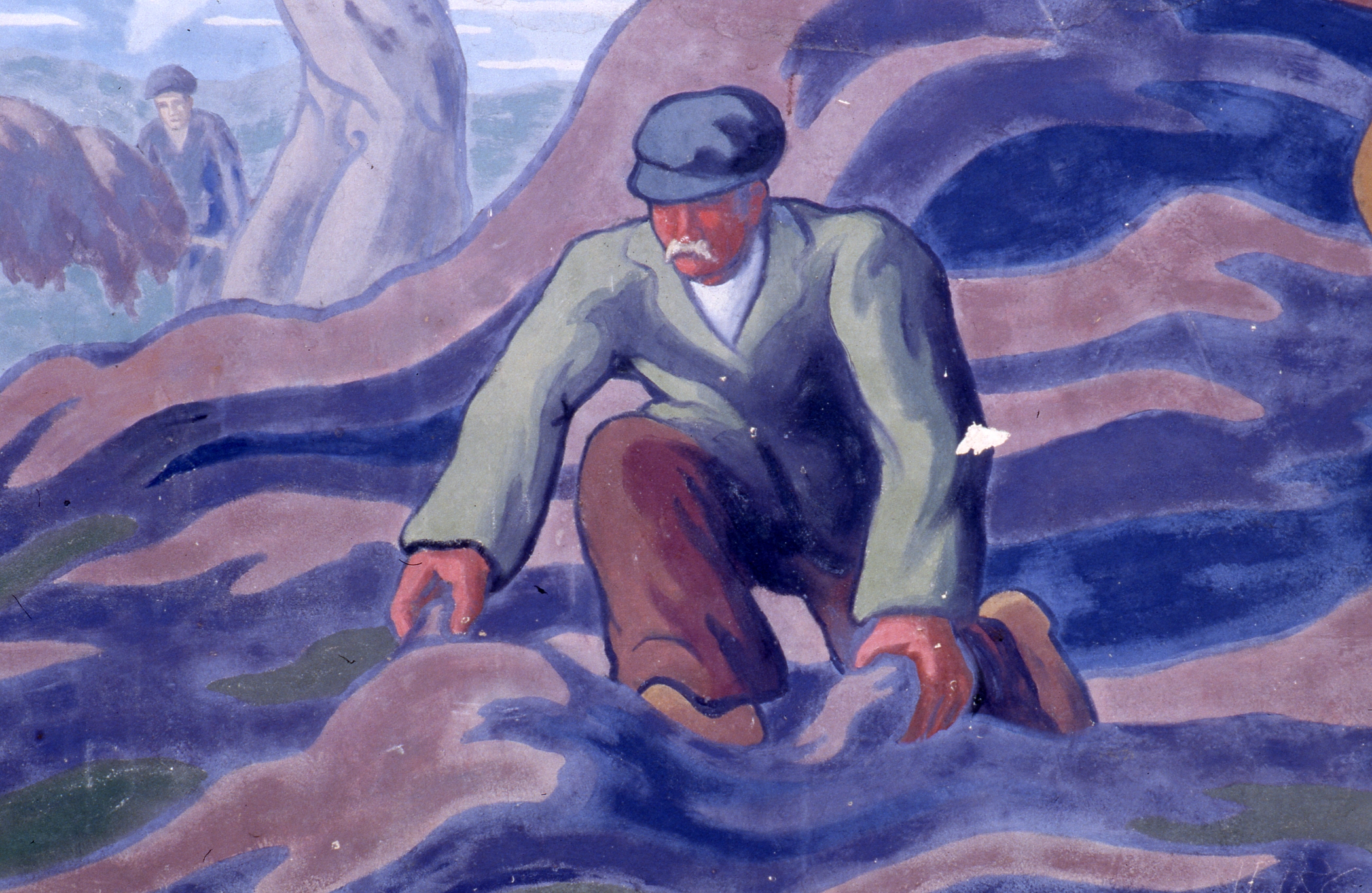 Panneau n°5 : détail des personnages ramassant le goémonImmatriculation