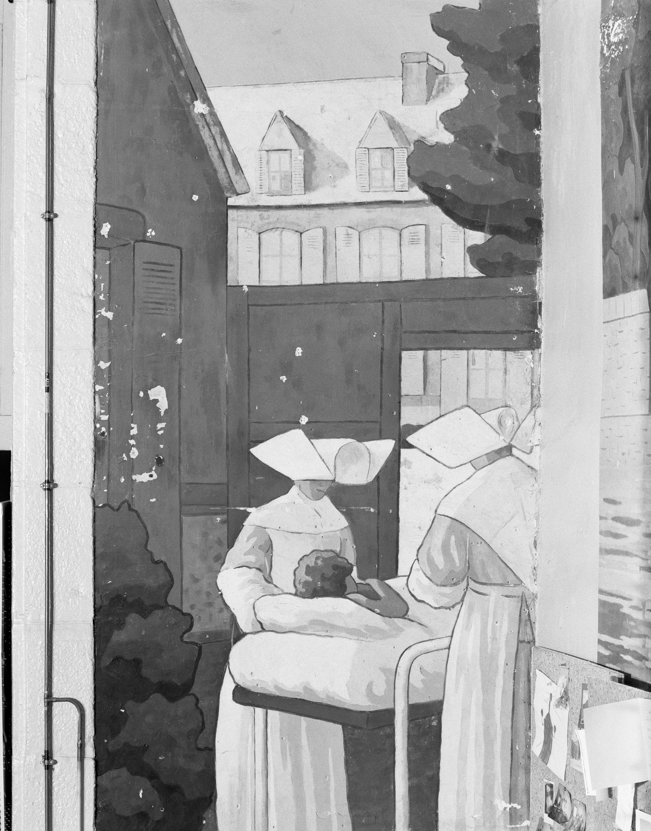 Panneau n°10 : détail des religieuses soignant un enfant alitéImmatriculation