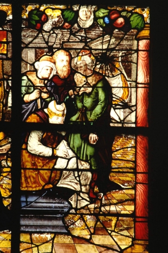 Verrière 5 - Détail, 1er registre, partie droite.Immatriculation
