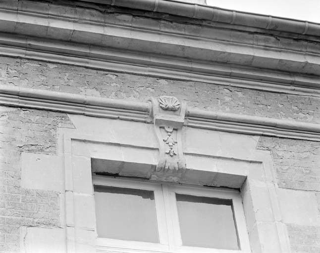 Elévation est, détail d'une baie du premier étage.Immatriculation