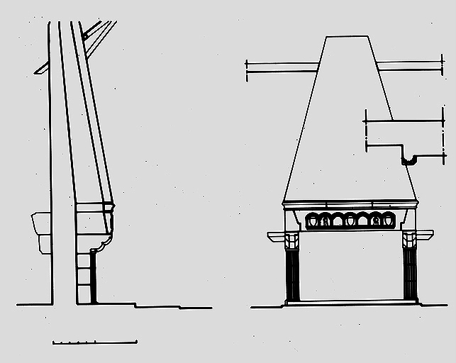 Cheminée de la salle vers 1400 : coupe, élévation, plan d'un piédroitImmatriculation