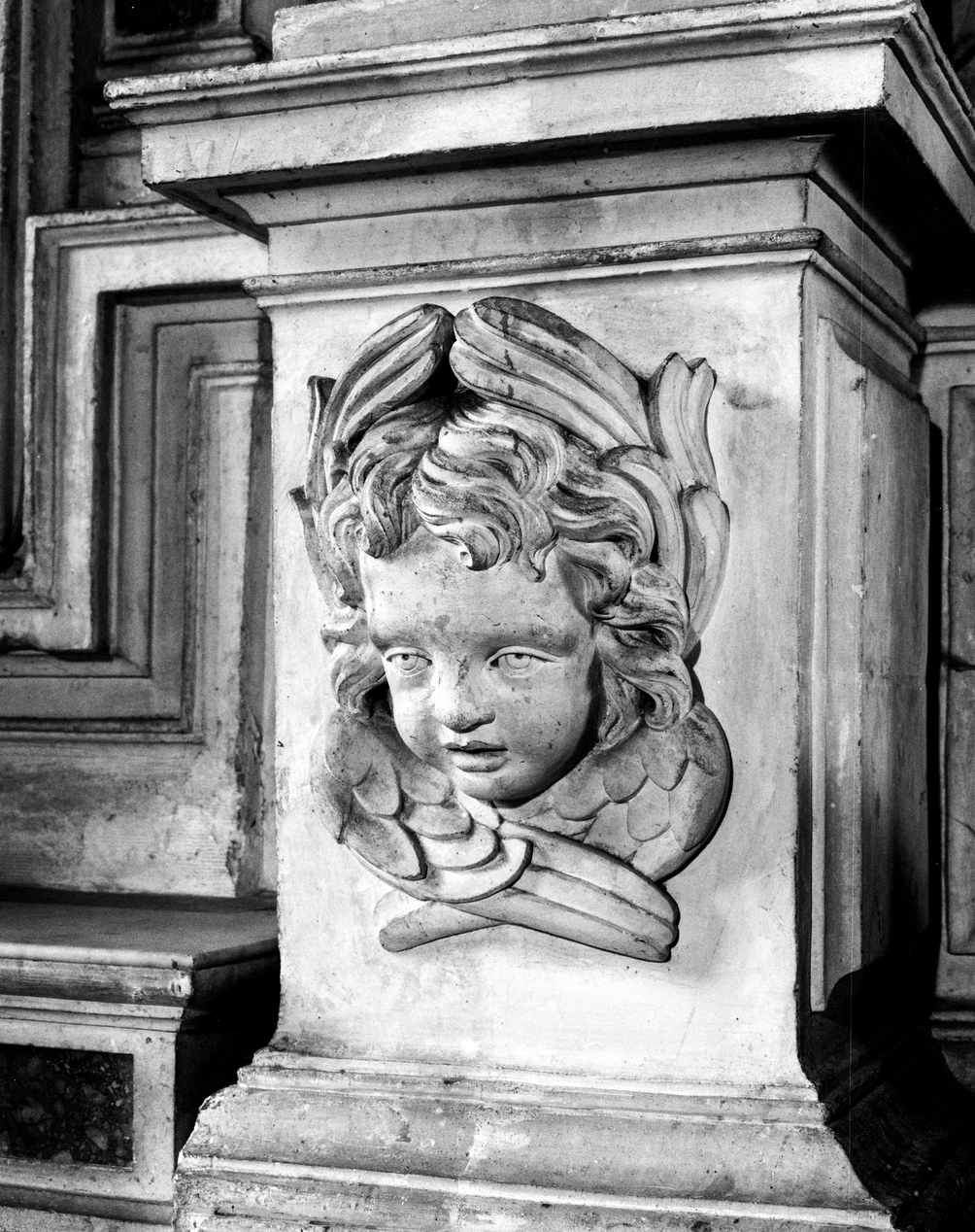 Base de la colonne de droite, tête d'angelotImmatriculation