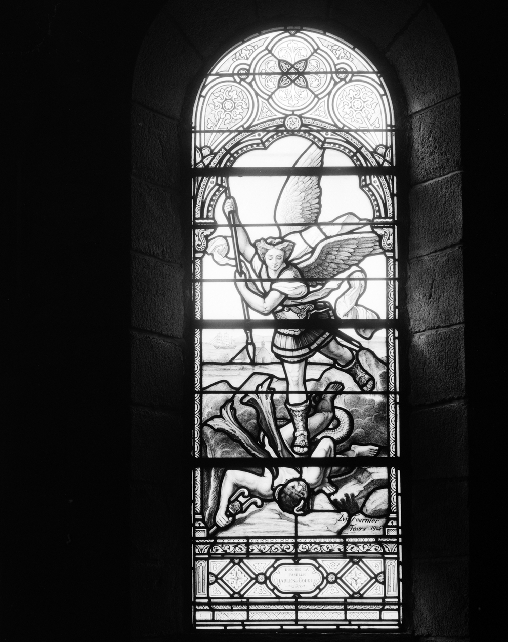 Verrière 8 : vue générale, saint Michel terrassant le dragon.Immatriculation