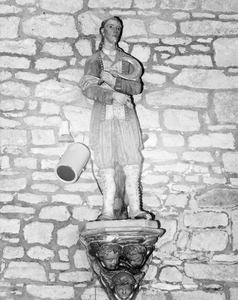 Statues (3), groupe sculpté (série, grandeur nature, d'applique) : saint Joachim, Education de la Vierge, saint Isidore, saint Cornély, église paroissiale Saint-Pierre (Baden),