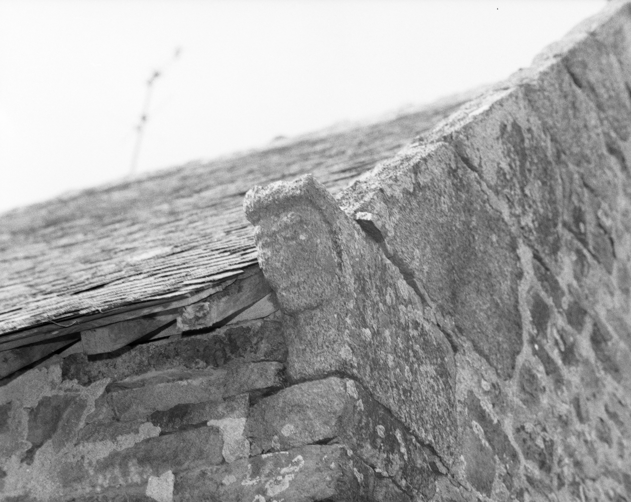 Elévation ouest, tête sculptée.Immatriculation