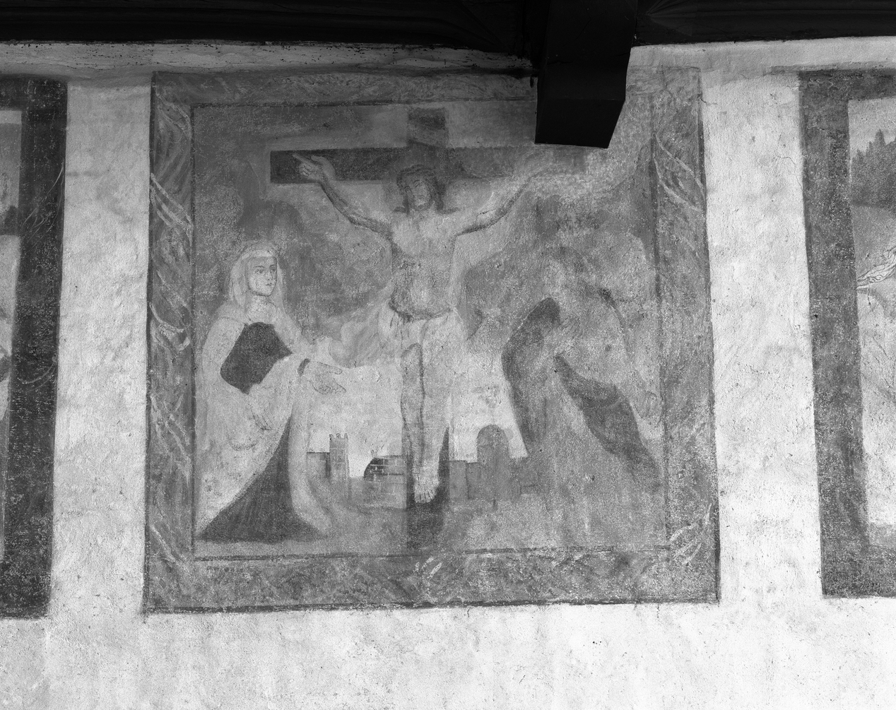 Ensemble de 9 peintures murales Passion. Crucifixion : état en 1992.Immatriculation