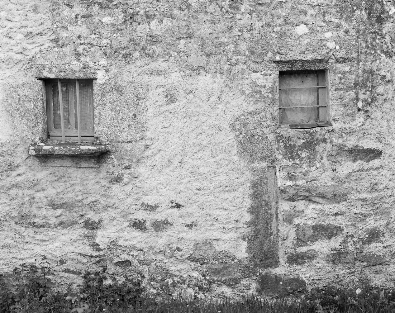 Le Versa, élévation ouest, partie nord, ouvertures : fenêtres et porte ancienne bouchée, maison datée 1828.Immatriculation