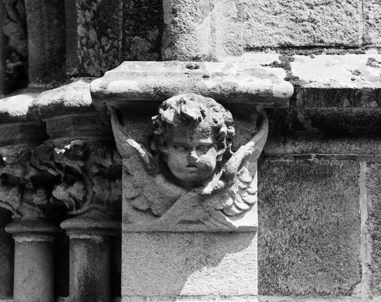 Chapelle, élévation sud, porte : détail sculpté.Immatriculation