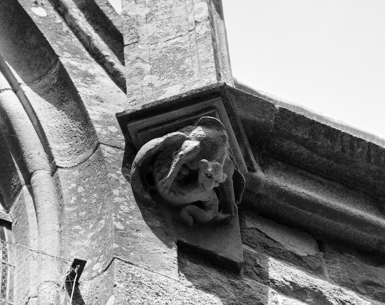 Chapelle, élévation est, détail sculpté à la base de la fenêtre.Immatriculation