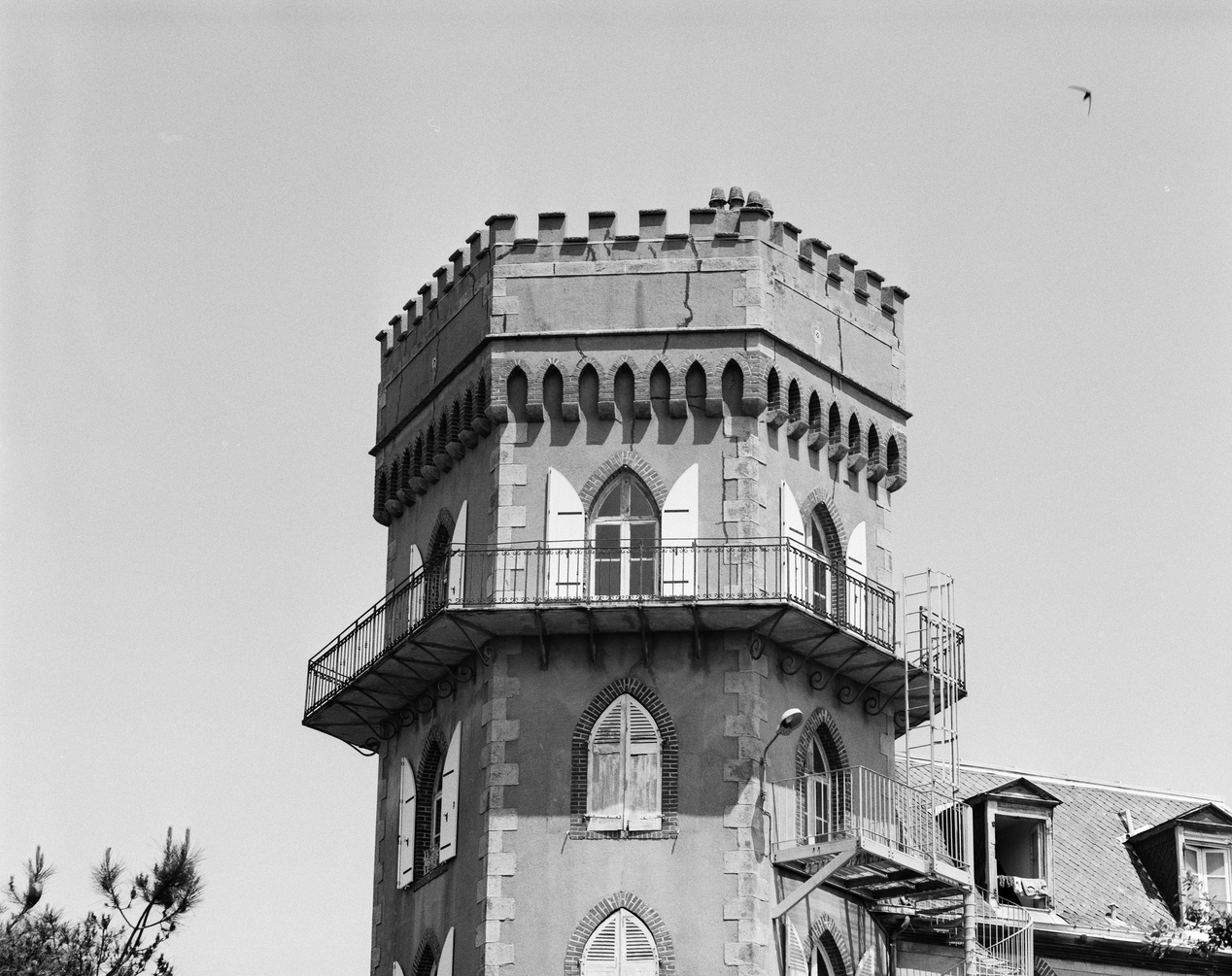 Deuxième logis, couronnement de la tour.Immatriculation