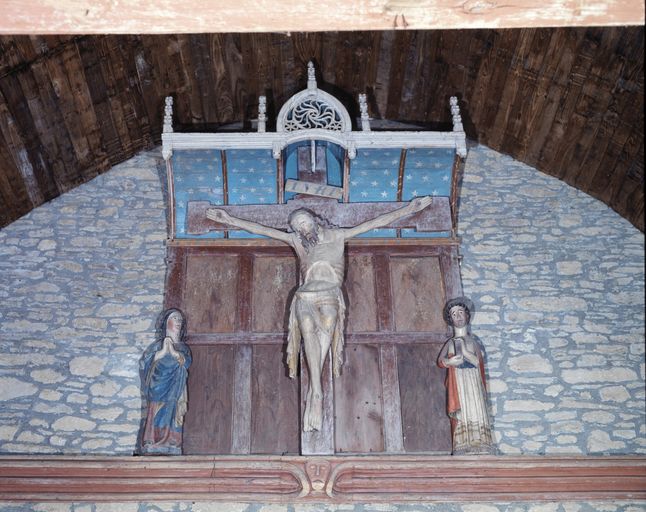 Groupe sculpté (à dais) : Calvaire, chapelle Saint-Gobrien (Saint-Servant-sur-Oust),