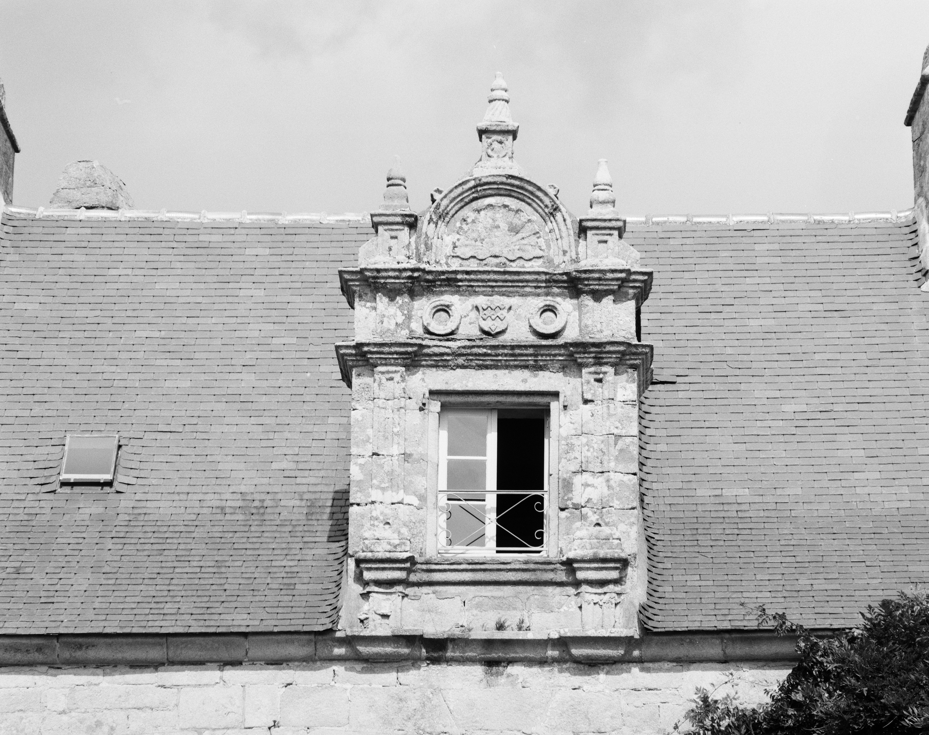 Corps de logis principal, élévation sud, lucarne médiane est.Immatriculation