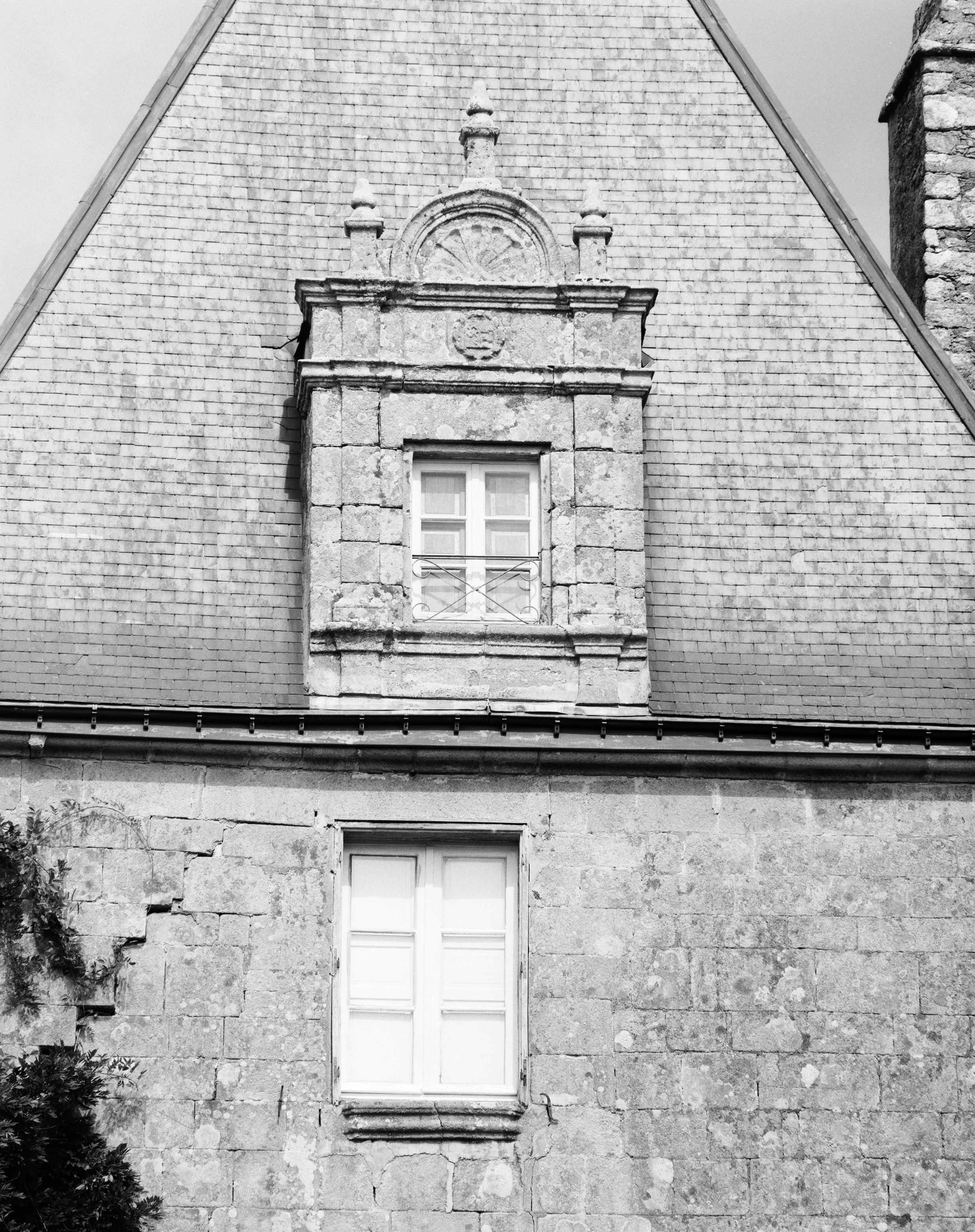 Logis, pavillon est, élévation sud : lucarne.Immatriculation