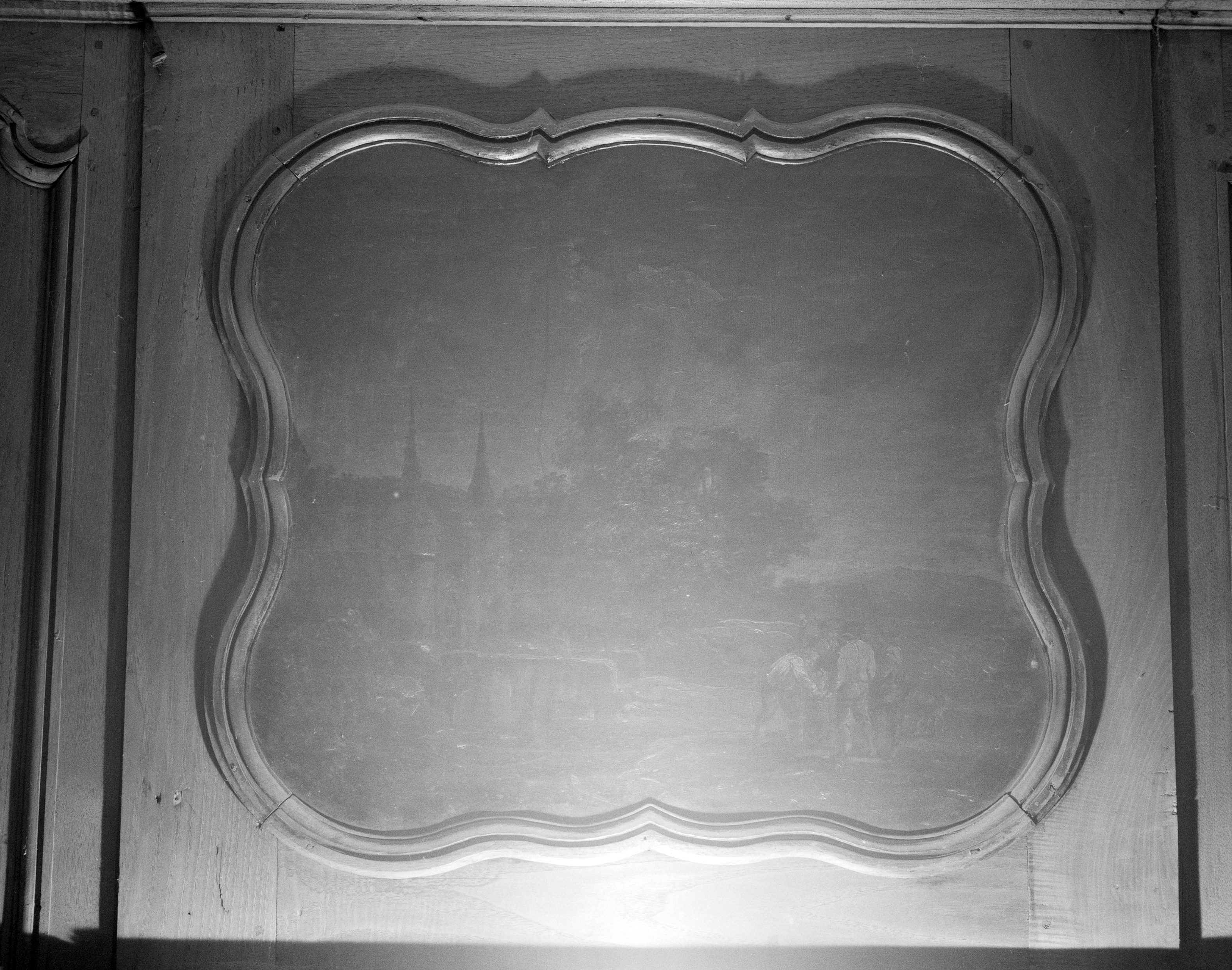 Maison, trumeau : Scène rurale avec des personnages devant un châtelet (coll. part.)Immatriculation