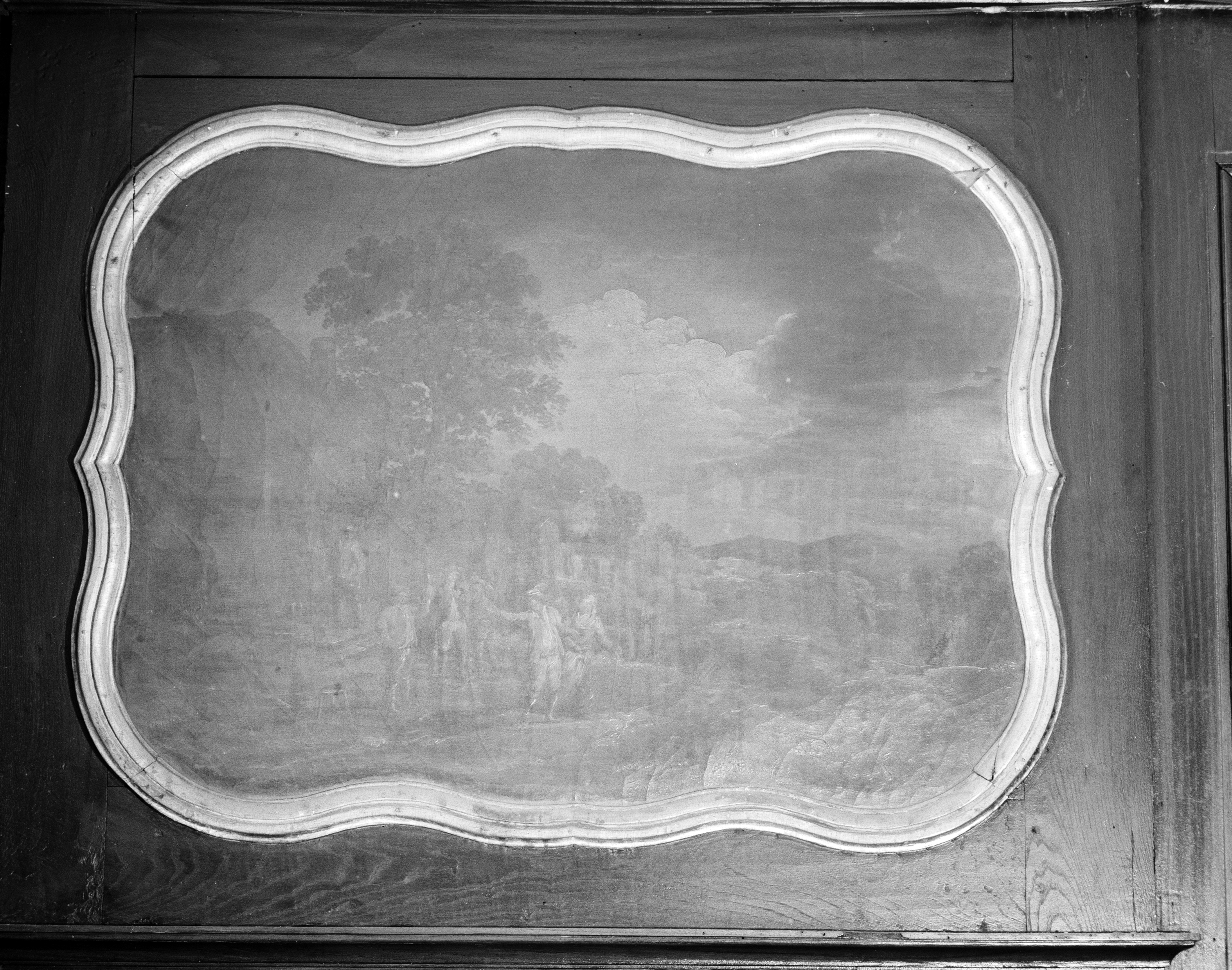 Maison, trumeau : Scène rurale avec cinq personnages (coll. part.)Immatriculation