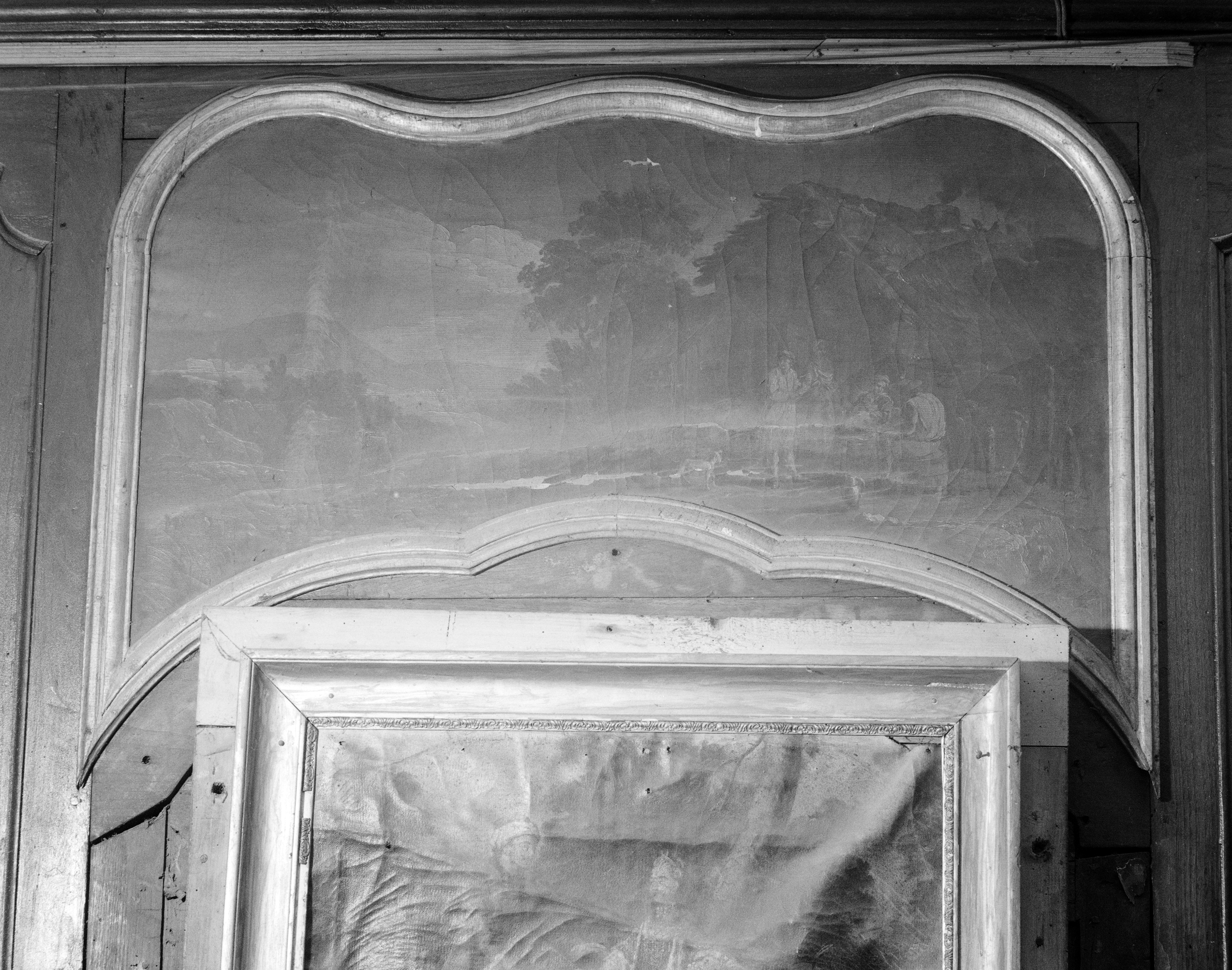 Maison, trumeau : Scène rurale avec trois personnages et un chien (coll. part.)Immatriculation