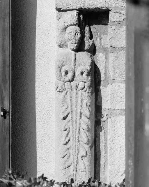 Maison, angle sud-ouest, décor : cariatide en pierre (état en 1992)Immatriculation