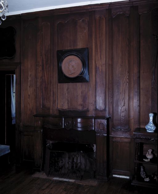 Maison, salle à manger, mur nord : lambris et cheminée (état en 1992)Immatriculation