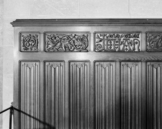 Logis, rez-de-chaussée, salle à manger : détail du lambris d'appuiImmatriculation