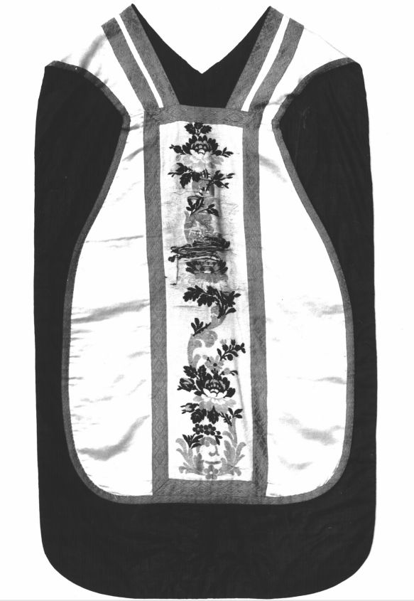 Ornement blanc : chasuble, étole, manipule, chapelle Saint-Julien, Le Bois du Gué (Saint-Servant-sur-Oust),