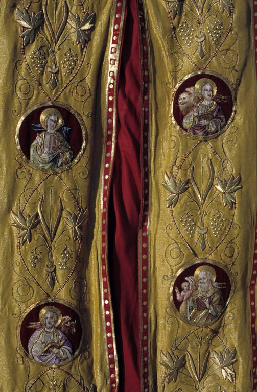 Chape dorée : les orfrois sont ornés du Tétramorphe (état en 1992)Immatriculation