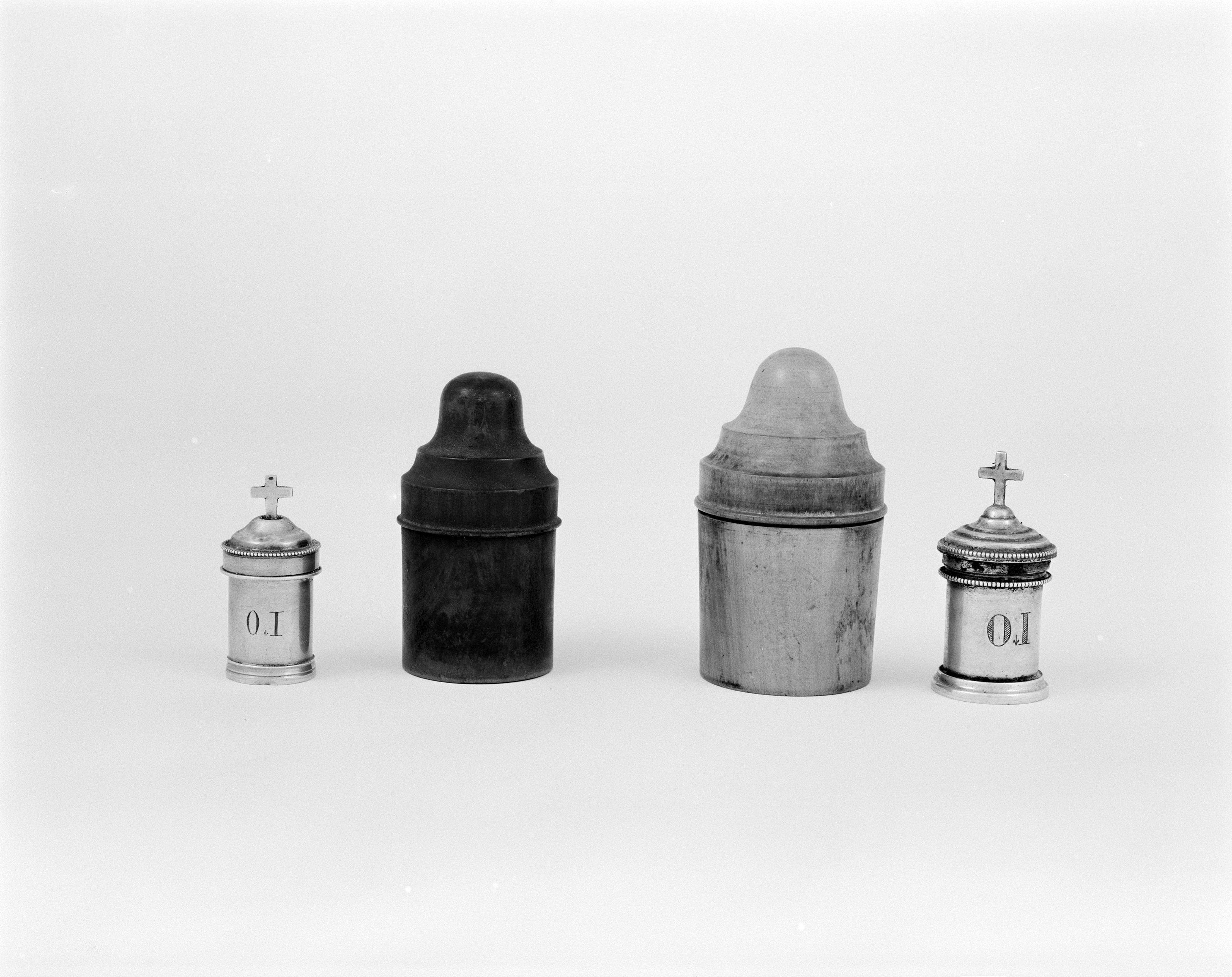 Ampoules à huile des malades et leurs coffrets : vue généraleImmatriculation