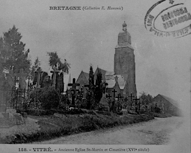 Ancienne église Saint-Martin et cimetière : vue générale (Carte postale ancienne, AD35 : 6Fi)Immatriculation