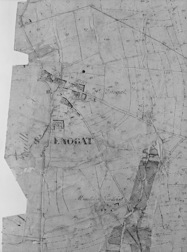 Extrait cadastral de 1828, section A1, Saint Enogat, partie droite du bourg, moulin de Perdriel.Immatriculation