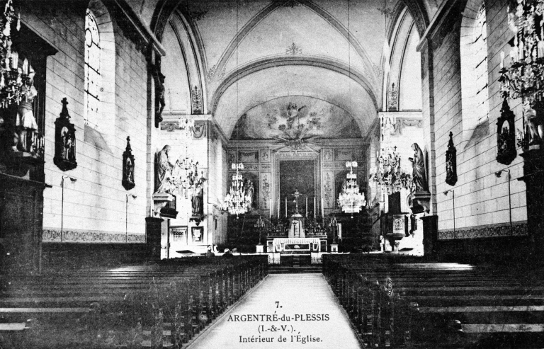 7. ARGENTRE-du-PLESSIS (I.-&-V.). Intérieur de l'Eglise. Carte postale, [s. d., 1er quart 20e siècle]. (A.D. Ille-et-Vilaine 6 Fi).