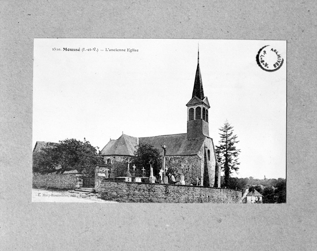 Ancienne église, élévation sud-ouest : vue générale.(carte postale ancienne).Immatriculation