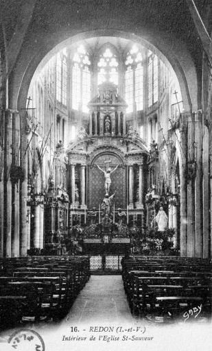 Intérieur : vue générale vers le choeur (Carte postale ancienne, AD35 : 6Fi)Immatriculation