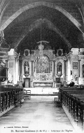 Carte postale ancienne - Intérieur : vue générale vers le choeur.Immatriculation