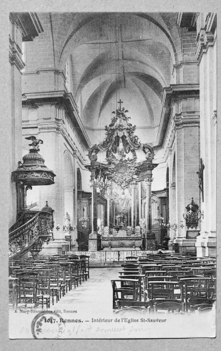Intérieur : vue générale vers le choeur (Carte postale ancienne, AD35 : 6Fi)Immatriculation