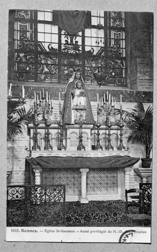 Intérieur, autel privilégié de Notre Dame des Miracles : vue générale (Carte postale ancienne, AD35 : 6Fi)Immatriculation