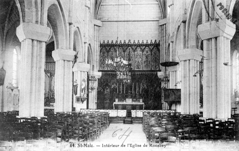 Intérieur : vue générale vers le choeur (Carte postale ancienne, AD35 : 6Fi)Immatriculation