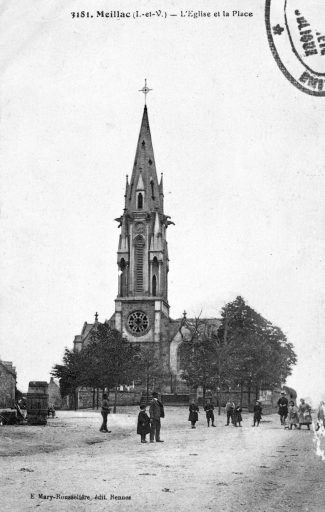 L'église et la place du bourg sur une carte postale au début du XXe siècle : vue de situation ouestImmatriculation