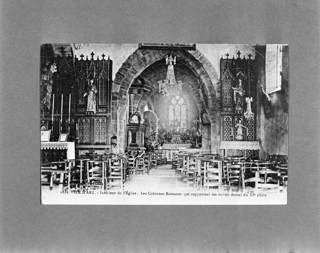 Prieuré Notre-Dame, église paroissiale, mairie, chemin du Vrai Secours ; chemin de Pénéra (Île-d'Arz),