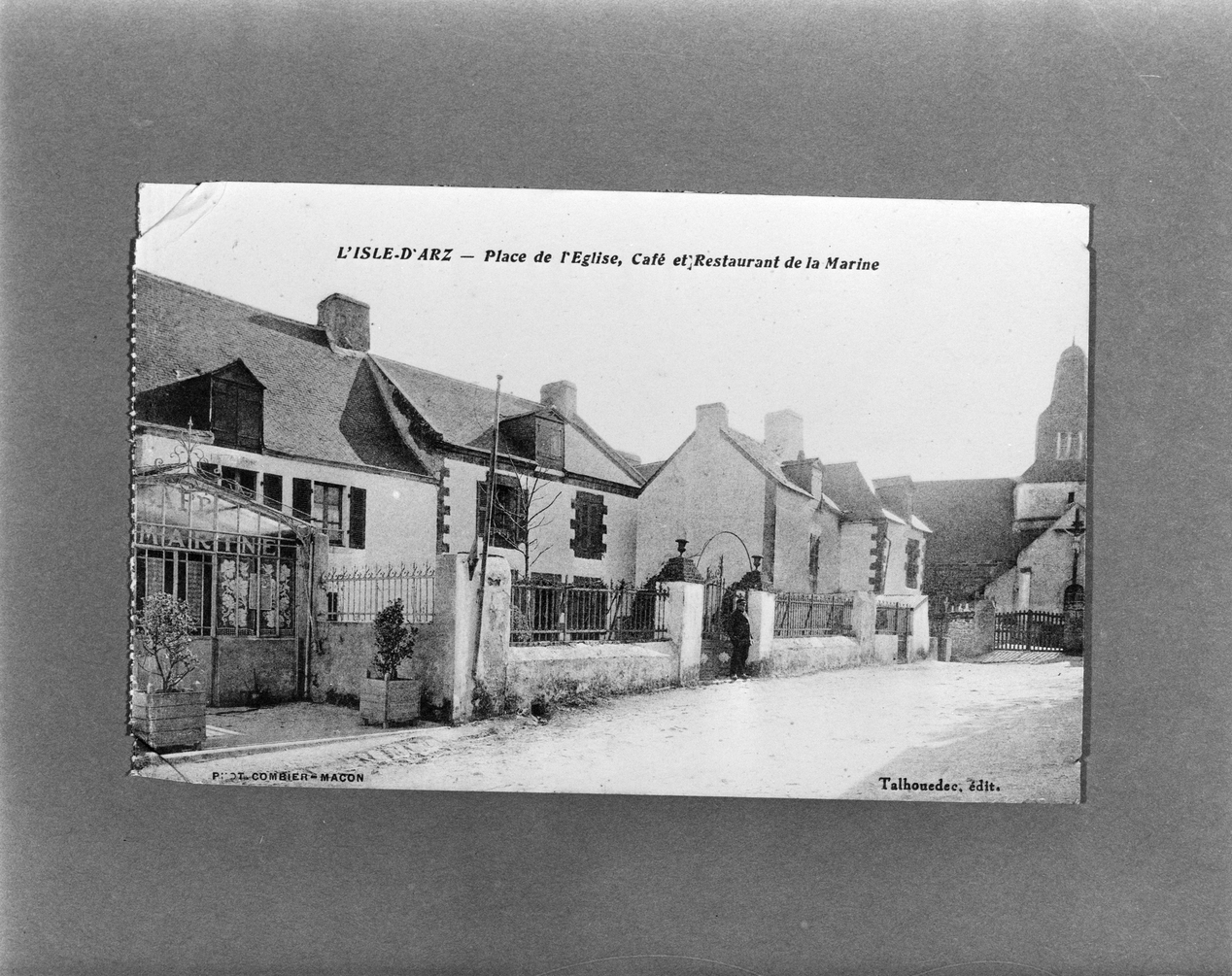 Place de l'église, café restaurant de la Marine, photo Combier, Macon. (Doc. A.D. Morbihan).Immatriculation
