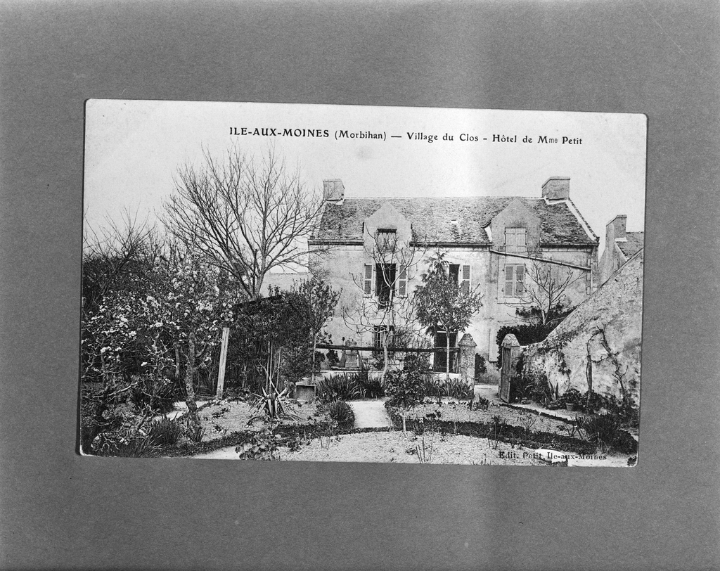 Village du Clos. Maison, carte postale ancienne, vers 1900. Editions Petit, Ile aux Moines. ( Doc. A.D. Morbihan).Immatriculation