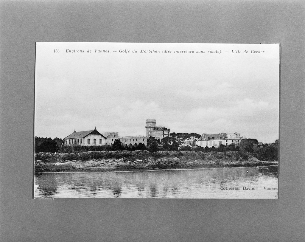 L'Ile de Berder, vue générale, vers 1900 ? Carte postale ancienne, coll. David Vannes.Immatriculation