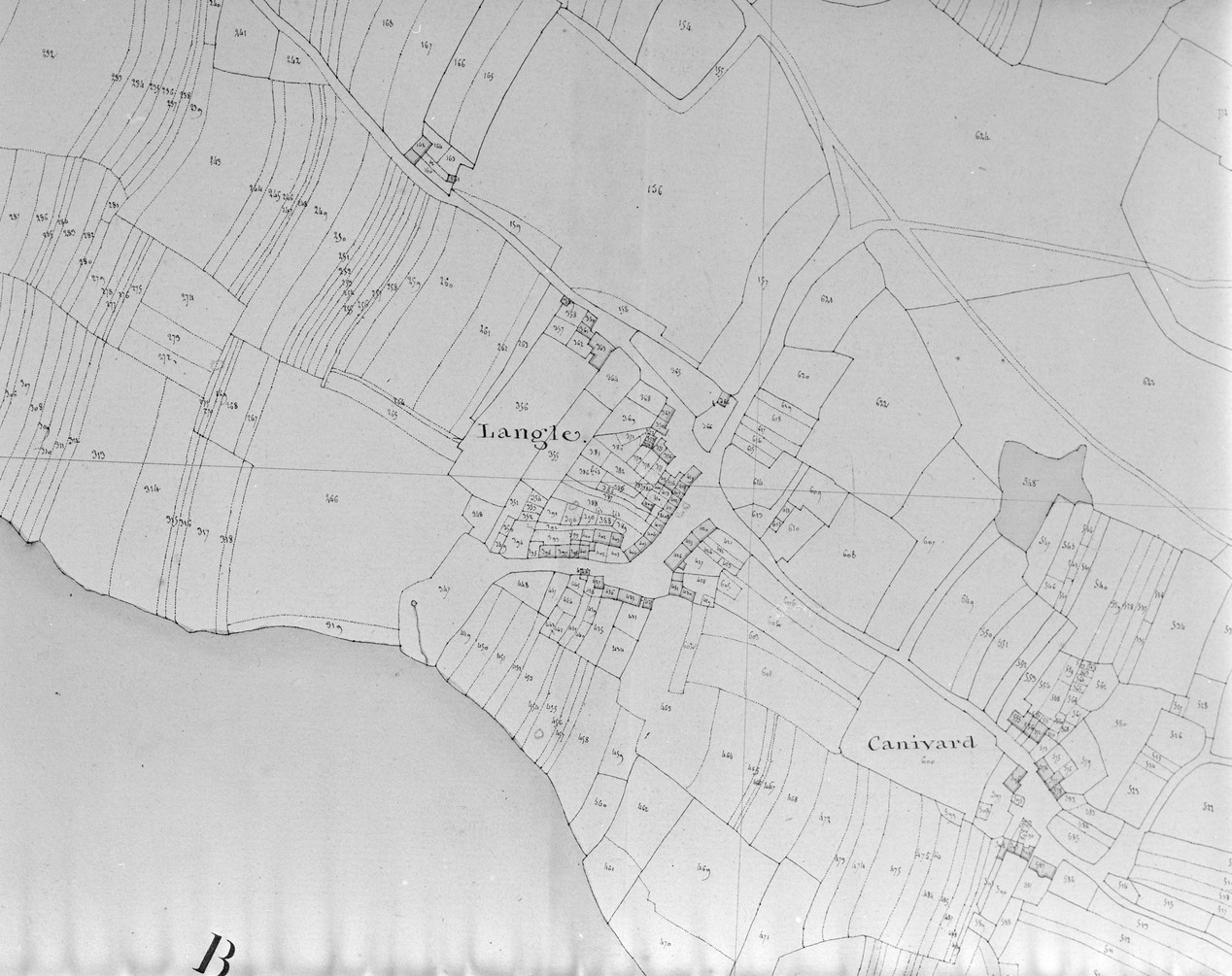 SÉNÉ, Langle , fontaine, extrait du plan cadastral 1809, section E1.Immatriculation