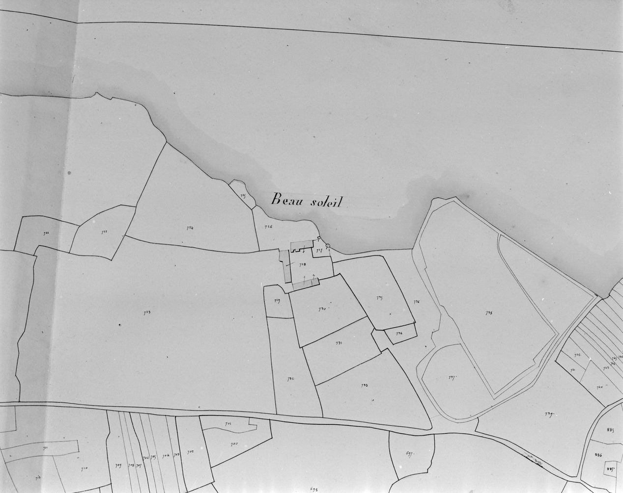 Beausoleil, extrait du plan cadastral de 1828 : section AEImmatriculation