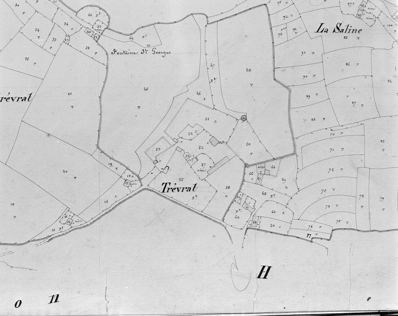 Trévrat - Ancien manoir, plan cadastral 1852, section G1.Immatriculation