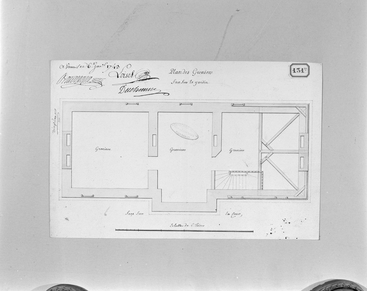 Logis, abbatial, plan des greniers, projet 1743 (Doc. A.D. Morbihan).Immatriculation