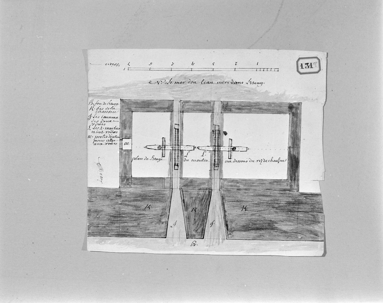 Sarzeau, Le Lindin, moulin de Lindin, plan de l'étage du moulin, dessin 131-18. (Archives Départementales Vannes).Immatriculation