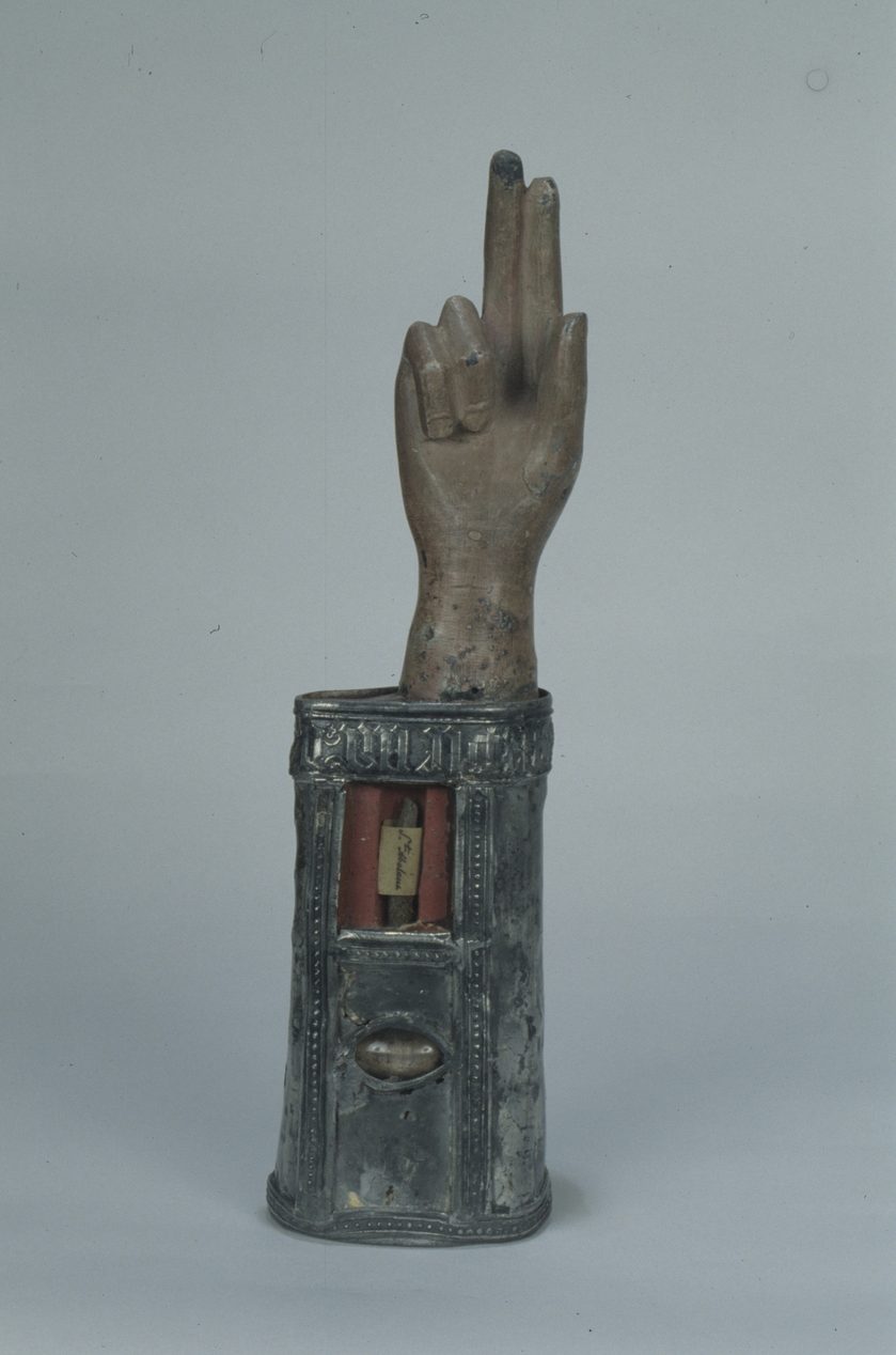 Chapelle Saint-Mélec, reliquaire morphologique : vue générale montrant la paume de la mainImmatriculation